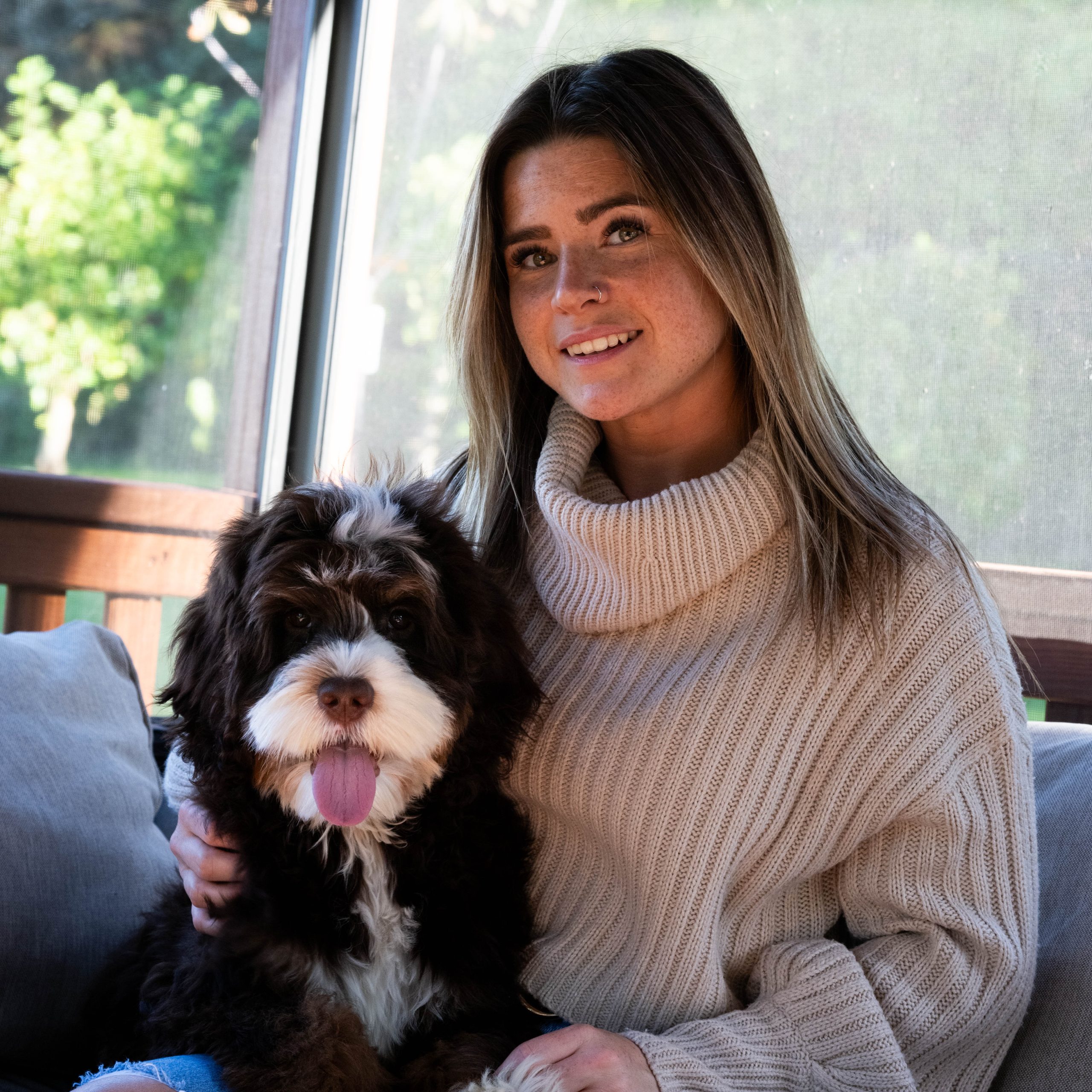 My love of animals began as a child. I began riding horses at the age of 9, and have had my own horse since age 15. At home I also have two dogs of my own (a Bernedoodle from SwissRidge and a Bernese Mountain Dog who is used in the SwissRidge breeding program) and a Siamese cat who is 18.