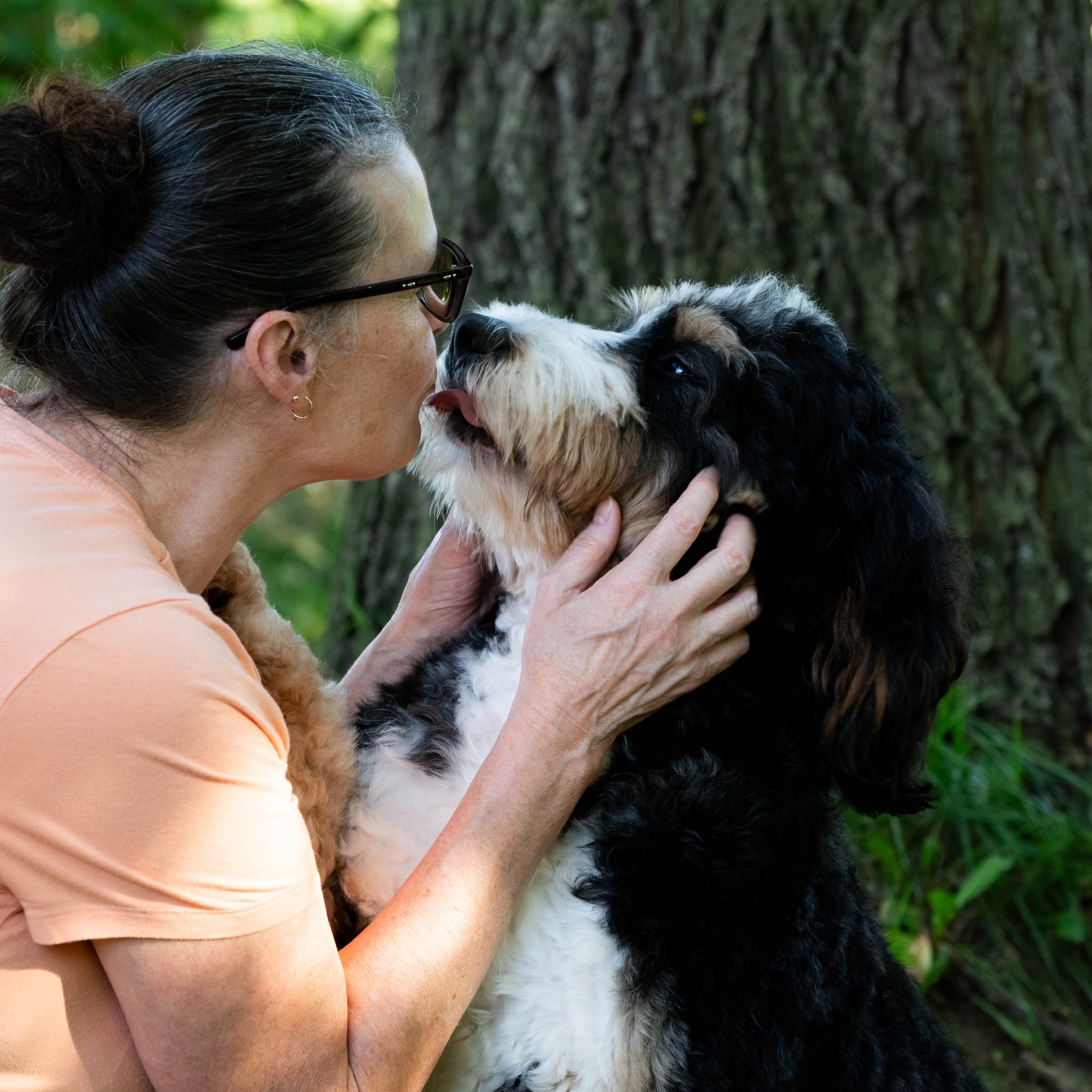 I have been a trainer at Swissridge for over 11 years, working with tinies, minis, and standard doodles of all kinds and I truly love them all. My passion for training began with my very first dog, a mini poodle, who blessed my life many years ago with 12 wonderful years. She sparked the lifelong love and respect I have for dogs, and laid the foundation for the work I do today. Since then, I’ve been blessed to share my life with a couple of wonderful Bernese Mountain Dogs and a Swissridge Doodle all from Swissridge and each of them deepening my love for dogs and reminding me every day why this work is so meaningful.