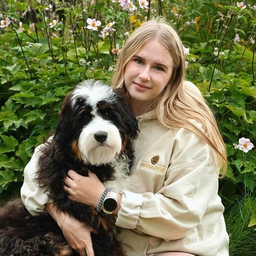 Even after that, I couldn’t get enough and started asking for a second furry friend. My parents said no, but working at SwissRidge has more than made up for it. Now I get to spend my days surrounded by amazing personalities and fluffy faces, and I couldn’t be happier. I truly love working here with all the dogs and the wonderful staff.