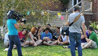 On the set of etalk with the host