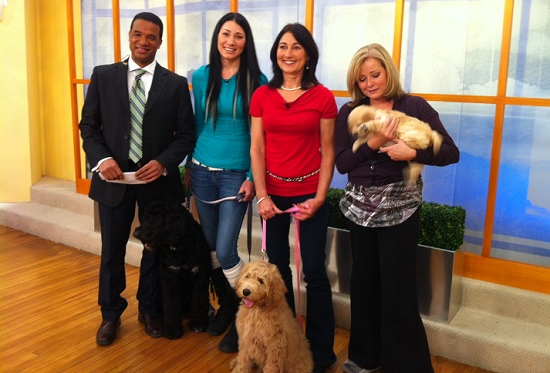 My pups joined me on the set of several TV shows to promote a new series, Surprise: It’s a Puppy. I love doing these types of promotions because the pups get a lot of attention, and it’s great socialization. See photos below.