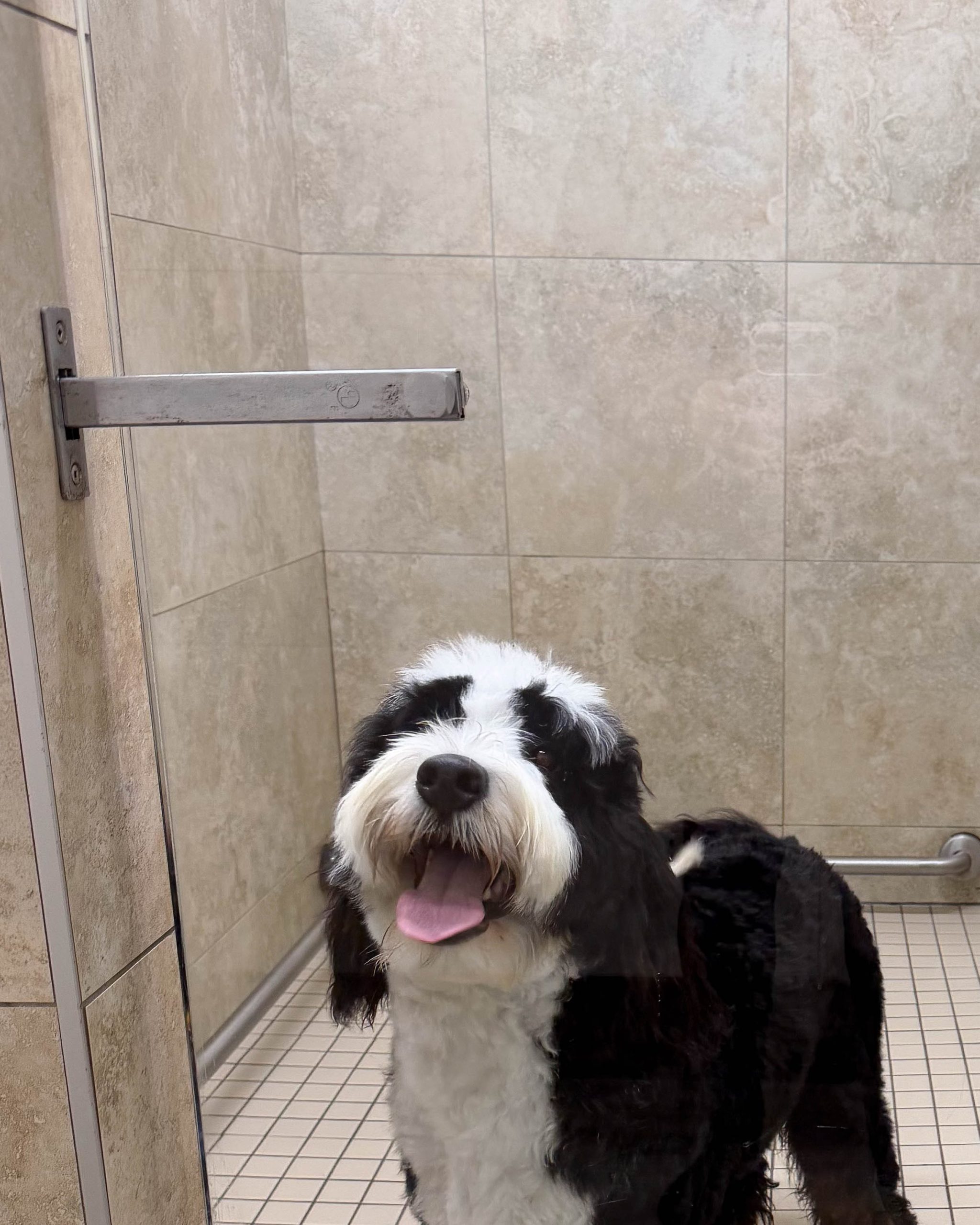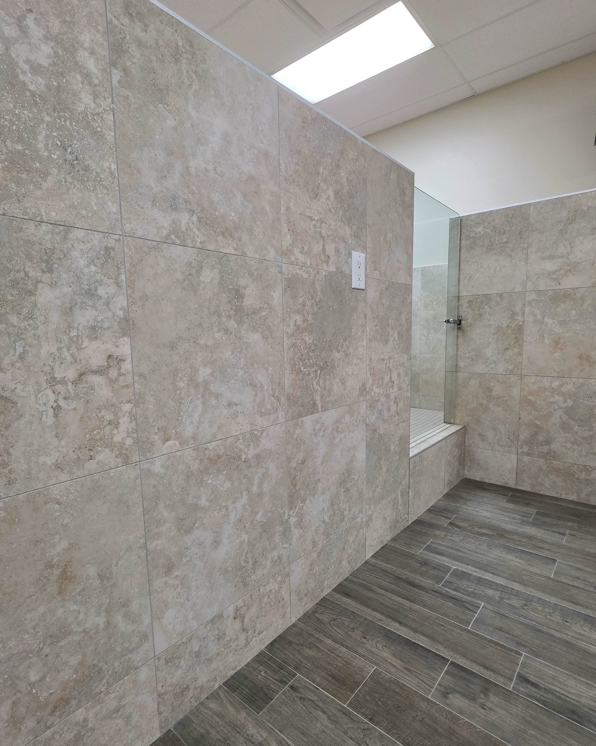 Tiles encompass the entire kennel, including some walls. This makes cleaning and sanitizing much easier and more efficient. This is another way to keep our dogs and puppies clean, healthy, and always looking in tip-top shape!