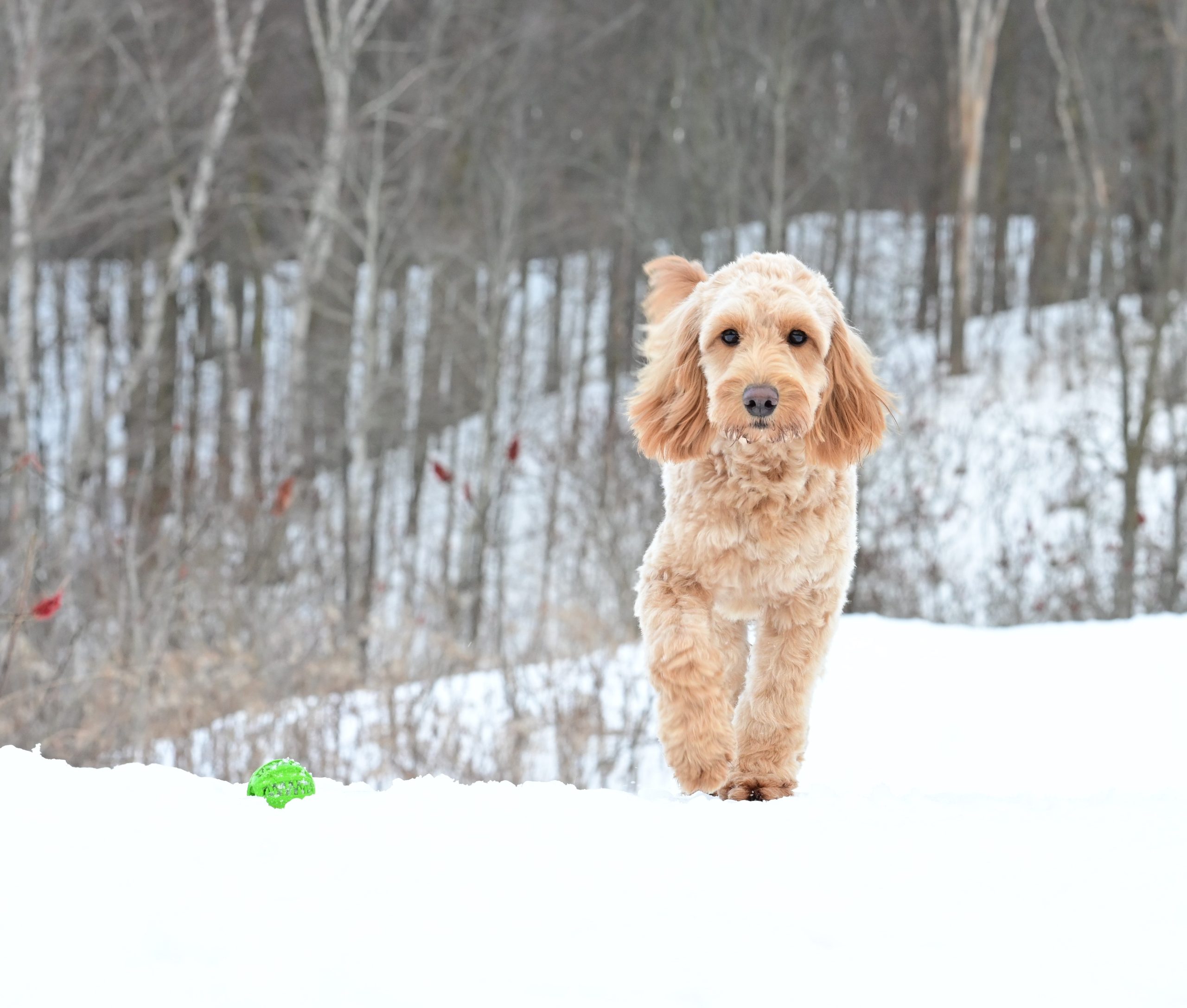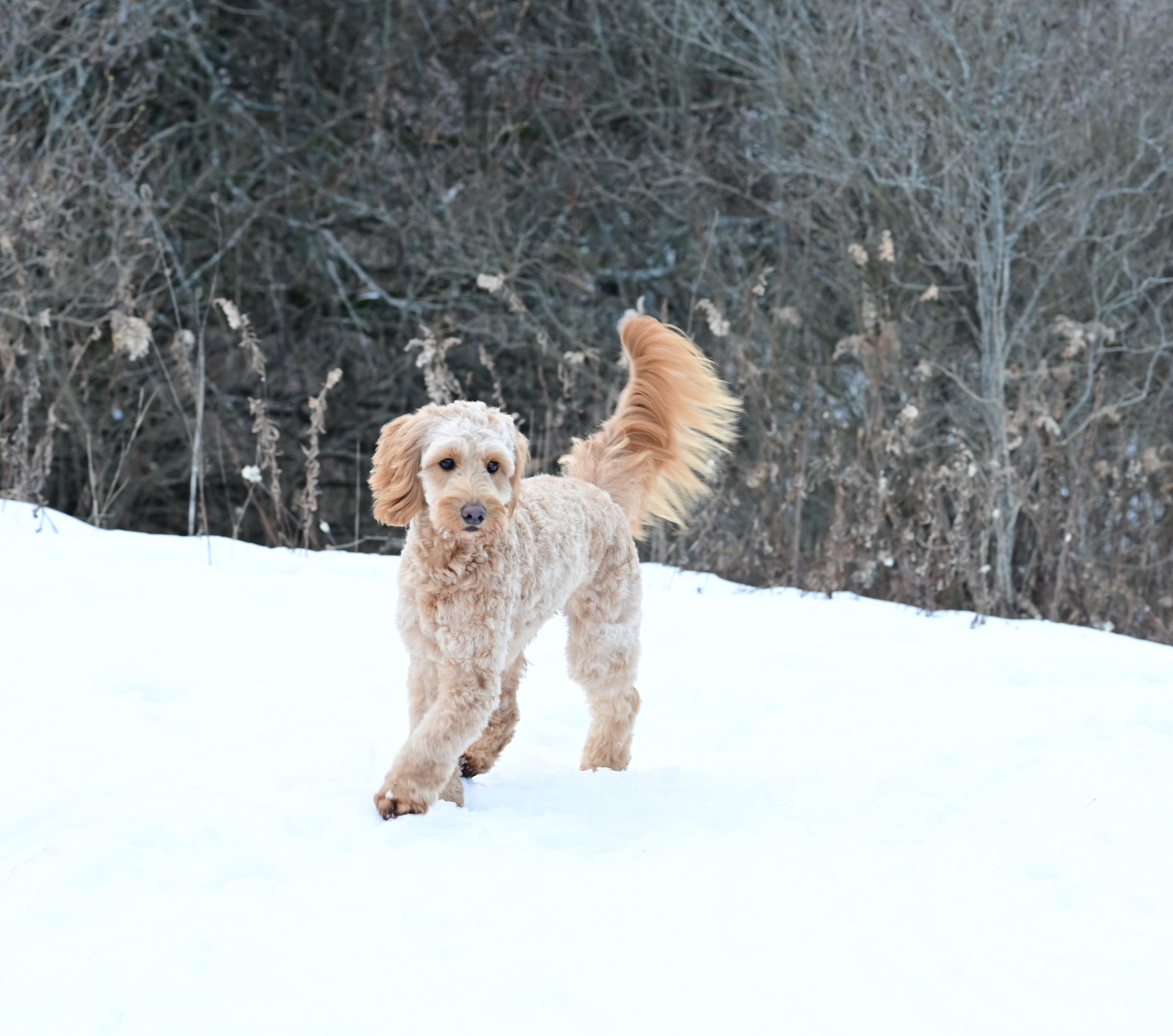 Binky Boo is a mini Goldendoodle out of Aria and Sting, bred and raised right here at SwissRidge. We also owned her grandparents—Aria’s parents—Monty and Ebony.