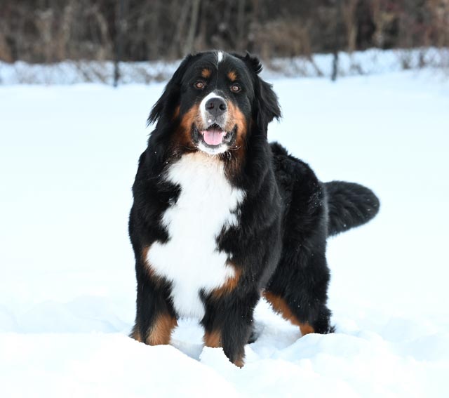 Charm was originally imported from Italy by one of my friends who breeds Bernese in the U.S. I later purchased her, and she came to live with me at the age of two.