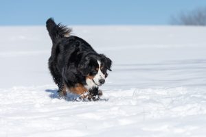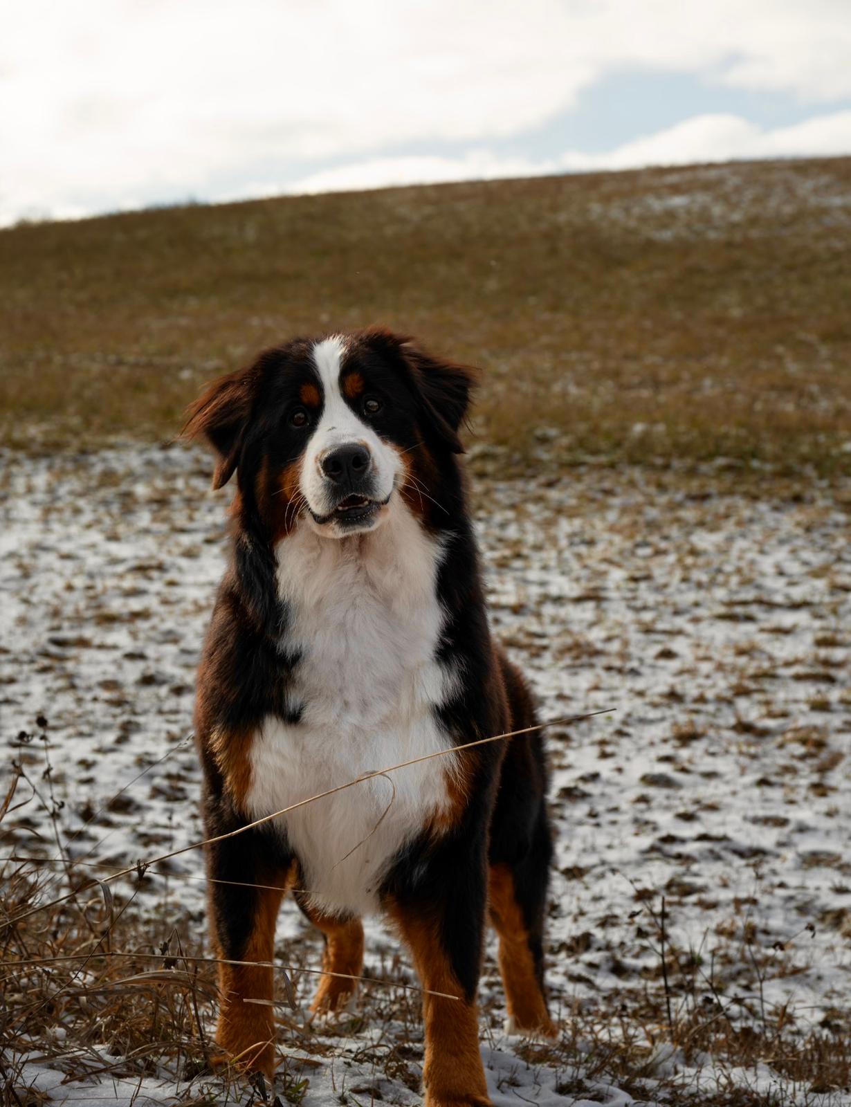 Delilah loves the snow (just like most Bernese) and when the yard fills with snow it’s like her winter wonderland. She gets so excited, diving face first, rolling and seeing how much of her body she can cover with the snow. She would rather sit out all day in the cold snow than come inside. Winter is her favorite time of year!
