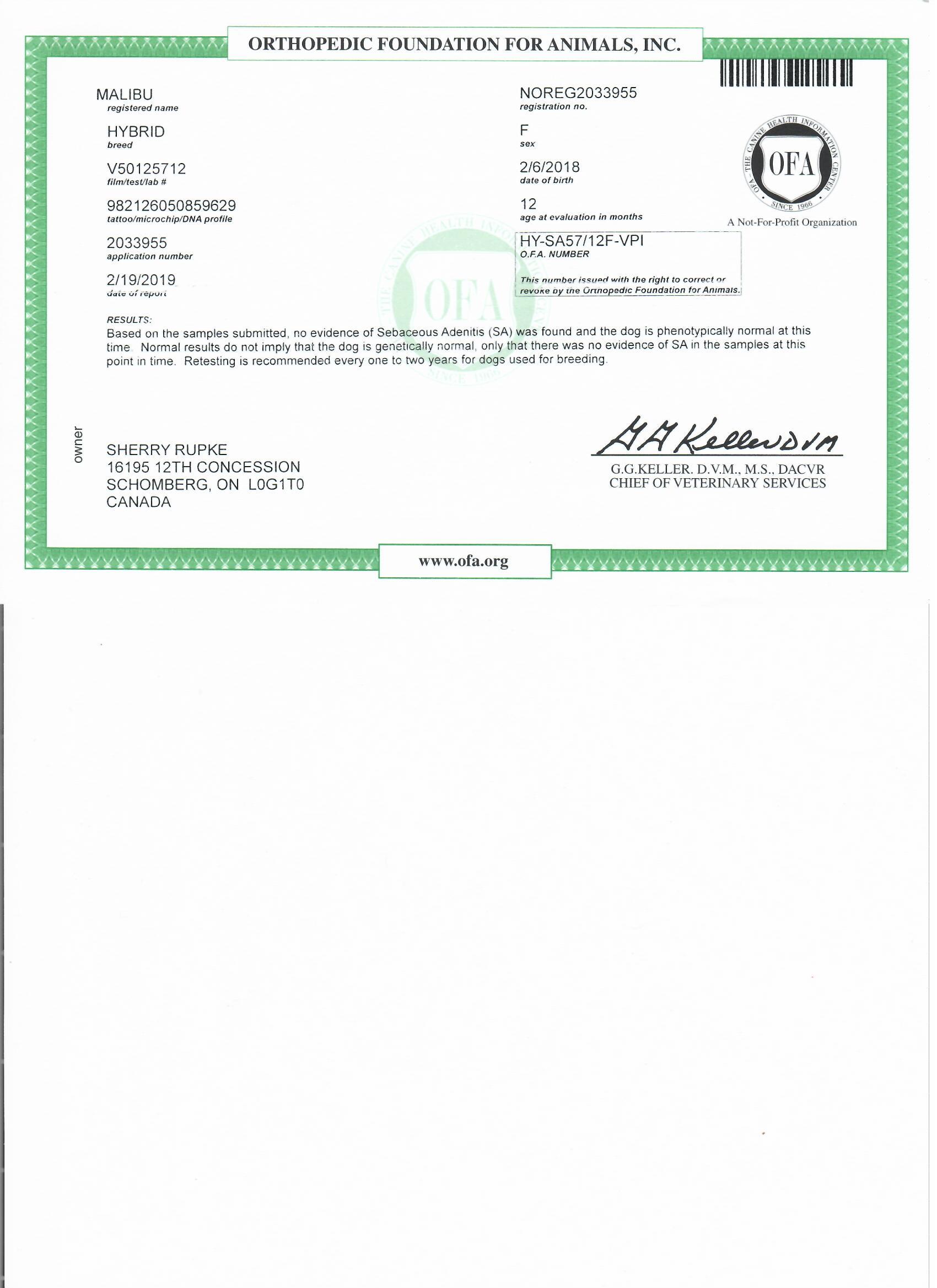 Malibu was bred and raised at SwissRidge. She is an amazing girl with a calm, affectionate, and loving nature. She truly is the perfect dog, both inside and out.