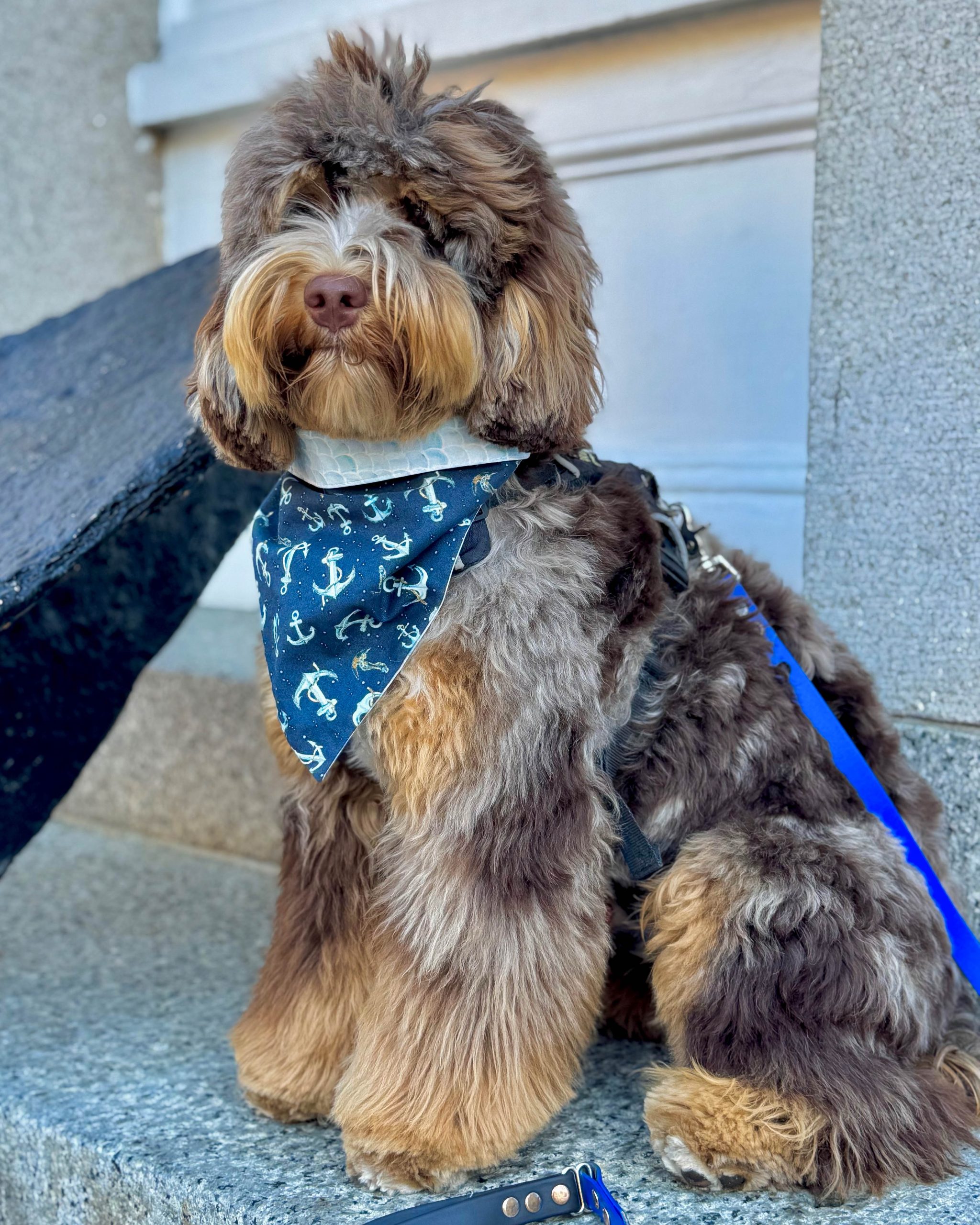 Anchor, my latest Australian Bernedoodle came to me at the age of 6 months. Unable to cross the boarder we had no choice in that matter. I have to say though the experience was just fabulous. I would receive weekly updates that I would read over and over again. Every week I would change my screen saver with one of the many updated photos the trainer would send. I was able watch Anchor mature and experience the world through the written messages, photos, and videos that his puppy trainer provided. I also learn along the way many techniques on how to train my new puppy so I could continue the journey with Anchor.