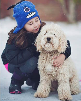 Our pup, Miss Fifi Mylo (Carrie & Sting, 22/Mar/14, Mini English Goldendoodle), has been such an amazing addition to our family. Neither my husband nor I ever had pets growing up, so we were hoping for an easy pup – we got her! It was love at first sight. None of us will forget the day we picked her up from the airport, she was very affectionate, and CUTE! She is now 23 lbs. at 8 months old. She is gentle, hilarious and very friendly. We never went through the nippy phase with her, and crate and potty training went extremely well. She will do anything for freeze-dried chicken!