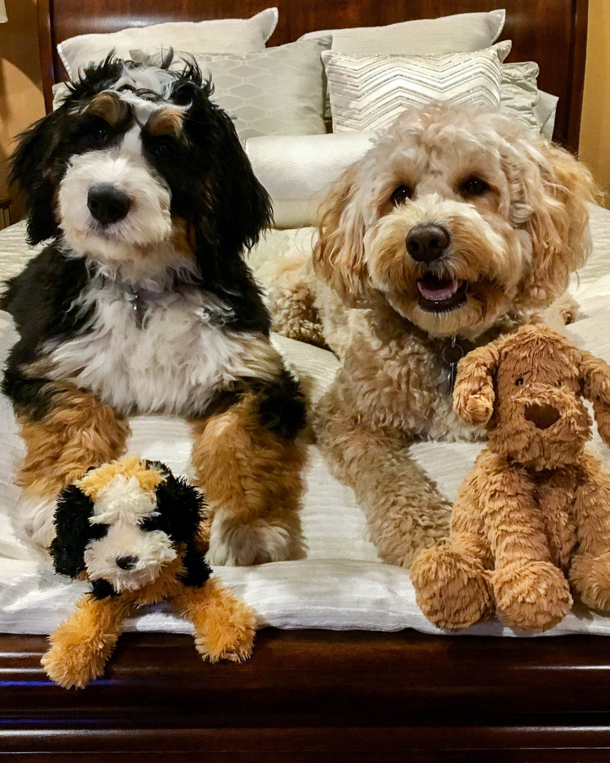 Hazel’s adjusted to life in Texas very quickly and we’ve adjusted to having a puppy in the house! She had very few issues with potty training and was completely trained within one month. She’s learned basic commands such as sit, down, come, leave it, and place. We have a trail near our house that she loves and everyone in the neighborhood loves her. We found another Bernedoodle, Bogey, who lives only a few streets away. He is a few days older than Hazel and they’ve become fast friends.