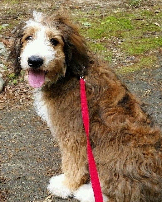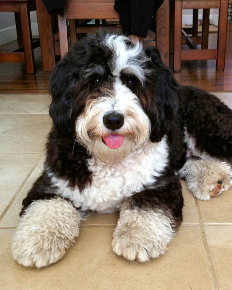 Raglan was from the litter of Chantelle, an Apricot standard poodle, and Dominique, a handsome Bernese mountain dog. Raglan is a wonderful pup but he did take some time and effort to get him that way. I’d say that was our fault though. Even though I read the books and studied the puppy handbook, I still made some mistakes. Luckily, with the support of a great trainer, I realized what I was doing wrong. Raglan is a wonderful companion and family member. He walks down the street like he is a Clydesdale horse and if one of his pack members breaks away from the pack he does not stand down until they return. He is loyal, loving, and with his long legged stature and winning personality, he is the best of all worlds. Raglan will be four in June 2014.